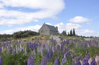 マウントクックの東側に開けた高原地帯、マッケンジー地方にある町。コバルト色の美しいテカポ湖畔に立つ1935年建造の「よき羊飼いの教会」等が見どころ。石造りの教会はこの辺りの開拓者のために建てられたもの
